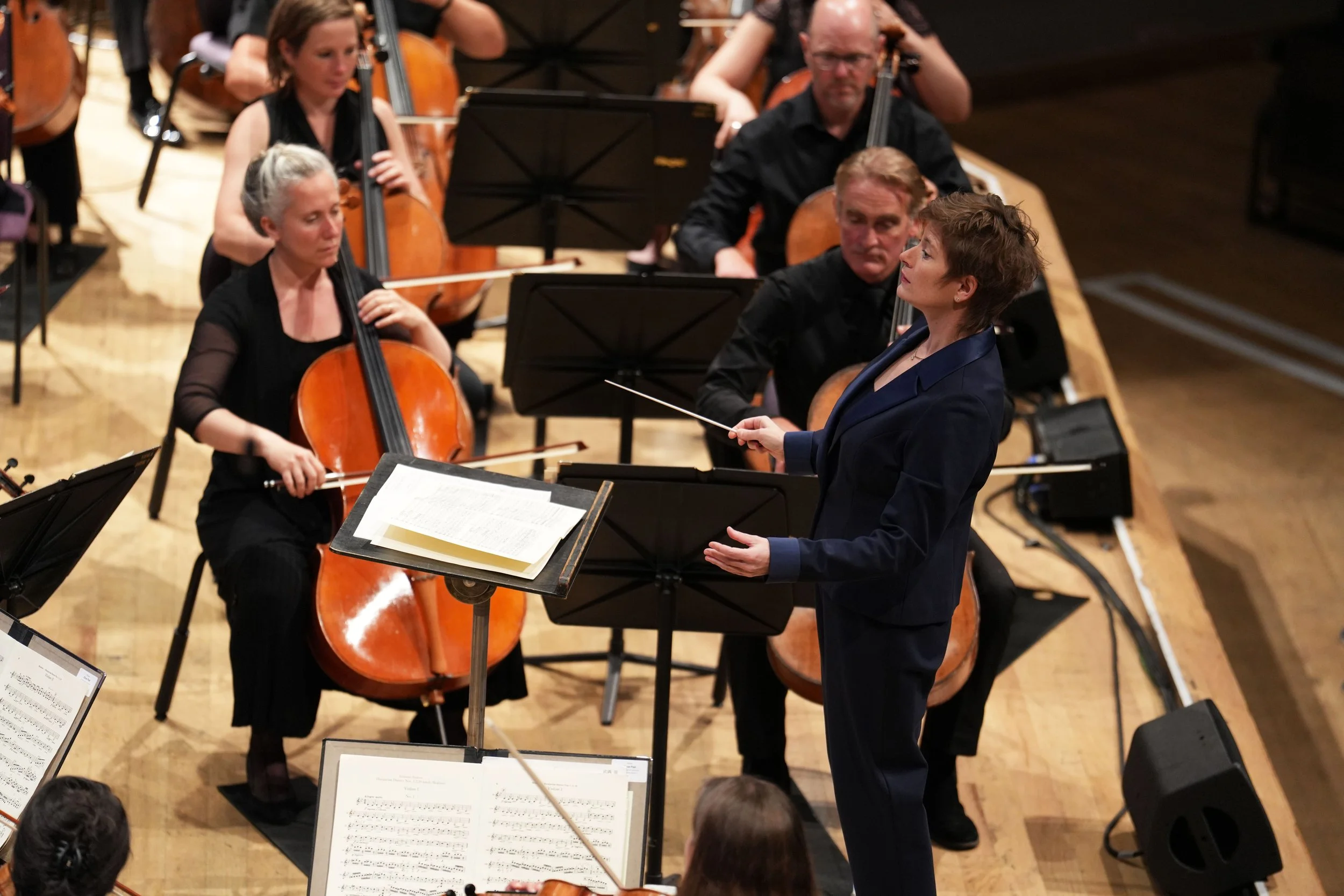 Anja Bihlmaier conducting the BBC Philharmonic Orchestra in concert at MCR:Classical 2023 © Alex Burns
